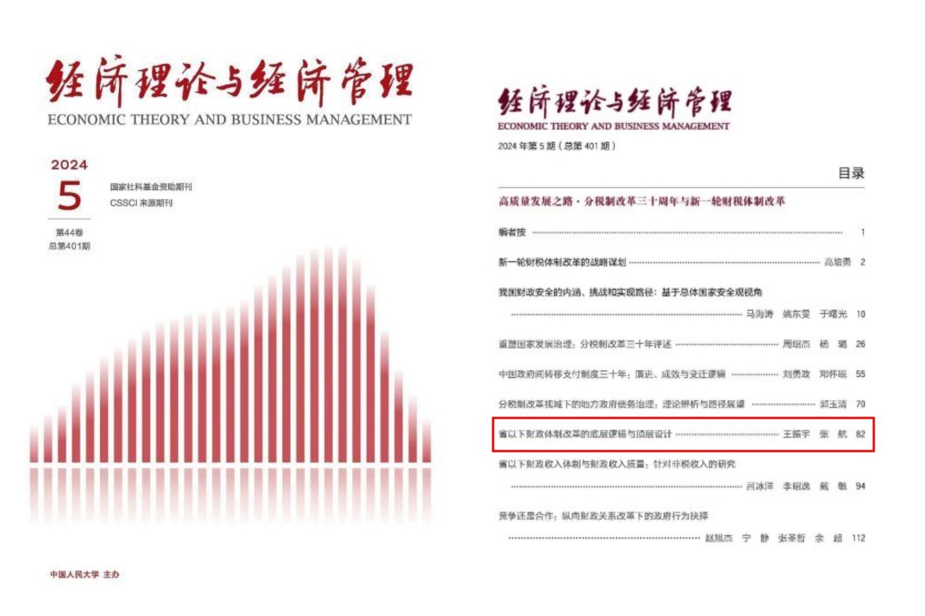 免费成人直播经济学院王振宇教授与博士研究生张航合作撰写的论文《省以下财政体制改革的底层逻辑与顶层设计》在《经济理论与经济管理》2024年第5期发表。