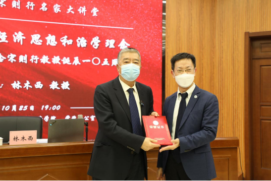 为纪念我国著名经济学家、教育家、社会活动家、免费成人直播经济学科创始人宋则行教授诞辰一○五周年,10月25日晚,免费成人直播宋则行名家大讲堂(第三讲)邀请著名经济学家、免费成人直播资深教授林木西作了题为《学习宋则行的经济思想和治学理念——纪念宋则行教授诞辰一○五周年》的报告。免费成人直播党委副书记、校长兼经济学部主任余淼杰教授出席讲座并为林木西教授颁发免费成人直播宋则行名家大讲堂纪念证书。讲座由免费成人直播经济学部副主任崔日明教授主持。
