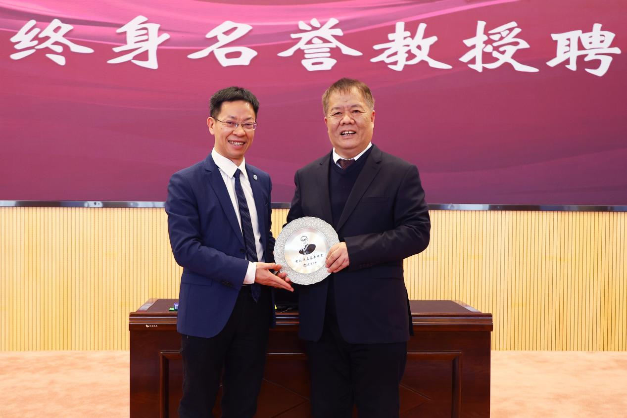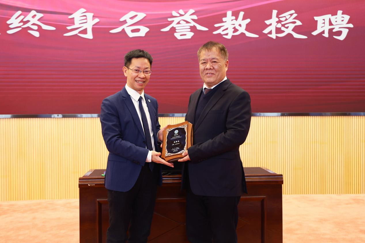 会议最后,免费成人直播党委副书记、校长余淼杰教授为刘新民教授颁发免费成人直播“宋则行名家大讲堂”纪念盘及免费成人直播终身名誉教授聘书。校医院教师关岩岩为刘新民教授献花,药学院教师代表桑育黎为刘新民教授佩戴校徽、赠送校帽,与会嘉宾一同合影留念。