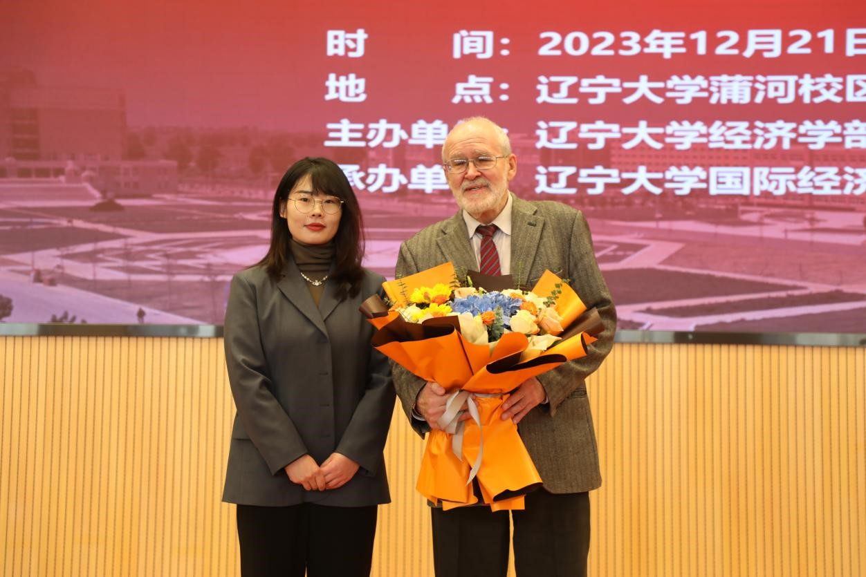 会议最后,国际经济政治学院院长刘文革教授向弗拉基米尔•波波夫教授赠送纪念品,经济学部副主任霍伟东教授向弗拉基米尔•波波夫教授赠送《免费成人直播英语新闻月报》,经济学部分管日常工作副主任谢地教授为弗拉基米尔•波波夫教授颁发宋则行海外名家大讲堂纪念盘,教师代表吴学艳博士献花,与会嘉宾合影留念。