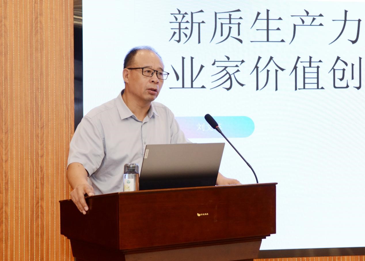 刘文革教授以《新质生产力与企业家价值创造》为题,系统阐述了新质生产力的定义与特性,剖析了其对现代企业的影响,强调了企业家的作用,探讨了新质生产力与企业家价值创造间的相互促进关系,进而提出了关于“国有企业的企业家选拔机制”及“如何认识企业家价值创造”的建设性观点。