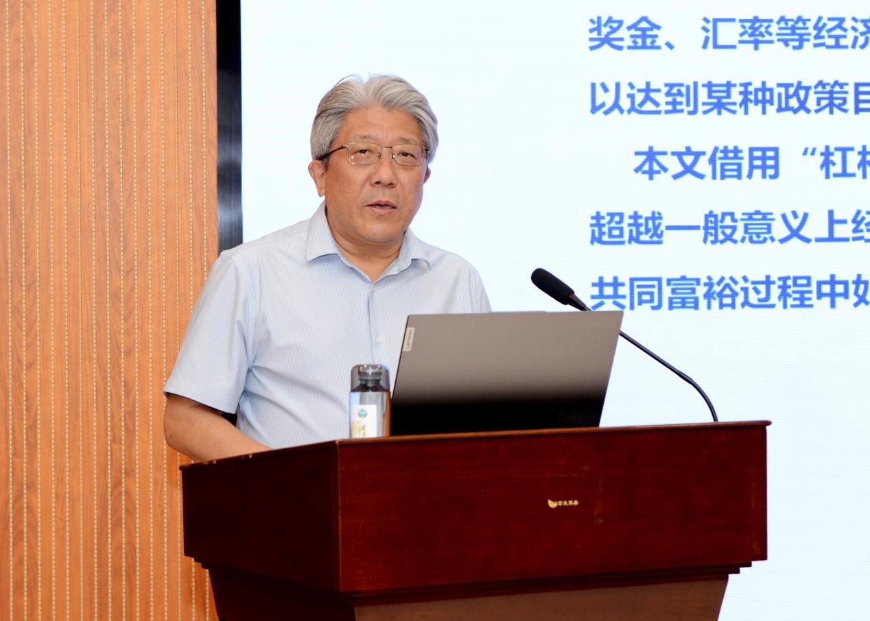 谢地教授以《略论国有经济推进共同富裕的杠杆作用》为题,从物理学中的杠杆原理引申到经济杠杆,进而围绕国有经济推进共同富裕的既有作用以及认知偏差,优化国有经济推进共同富裕杠杆作用的必要性、可能性及实现路径等方面展开论述,生动描绘了国有经济在实现共同富裕过程中“四两拨千斤”的独特作用。