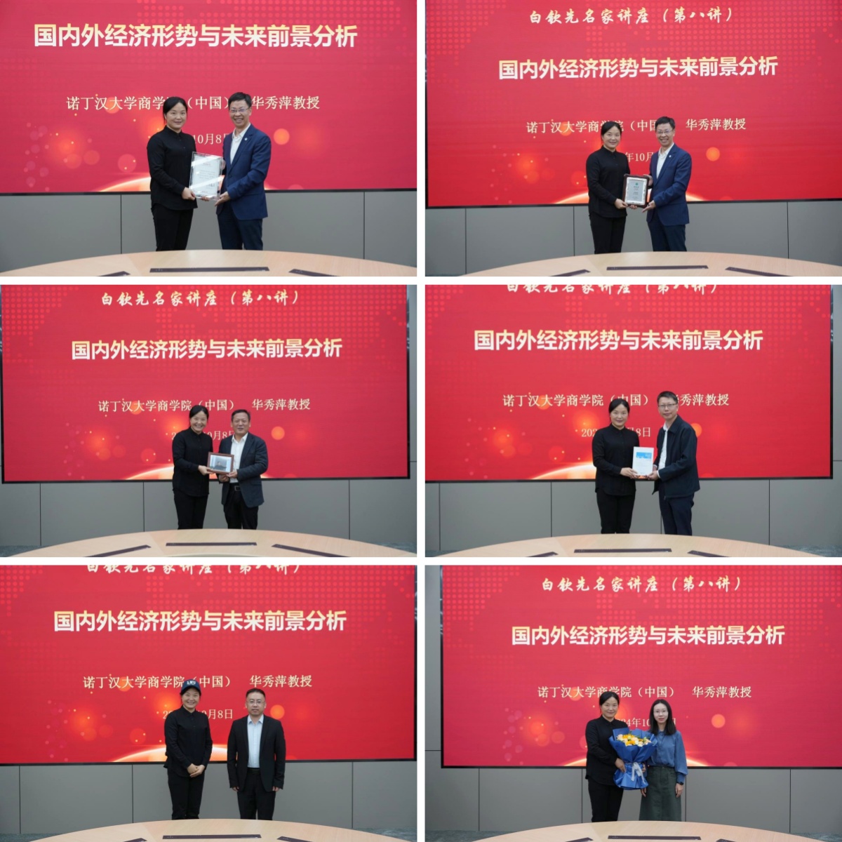 讲座结束后,余淼杰为华秀萍教授颁发了白钦先名家讲座纪念证书和免费成人直播客座教授聘书,李政为华秀萍教授赠送纪念照片,经济学部副主任霍伟东教授为华秀萍教授赠送了《免费成人直播智库报告》,经济学院教授张广辉为华秀萍教授赠送校帽,经济学院教师代表荣莹为华秀萍教授献花致敬,与会嘉宾合影留念。