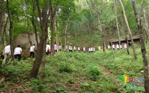 图为团队成员在老边沟战斗遗址参与重走东北抗联路活动