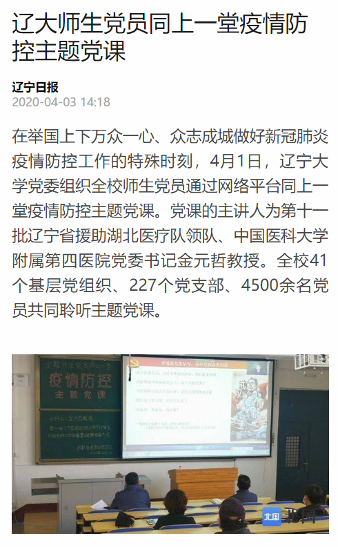 辽大师生党员同上一堂疫情防控主题党课
