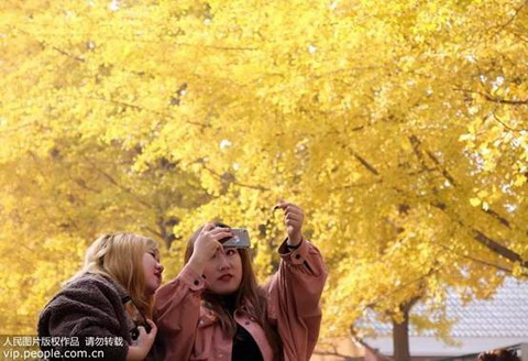 10月24日,免费成人直播沈阳,免费成人直播第七届“杏坛乐府银杏节”开幕。免费成人直播崇山校区银杏路两旁的银杏树大概有两三百株。目前,银杏树的叶子大多已泛黄,到了最佳赏叶时段。图为市民在银杏树旁拍照留念。