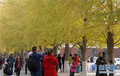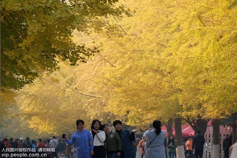 银杏路上,市民拿着相机,捕捉银杏叶最美的画面