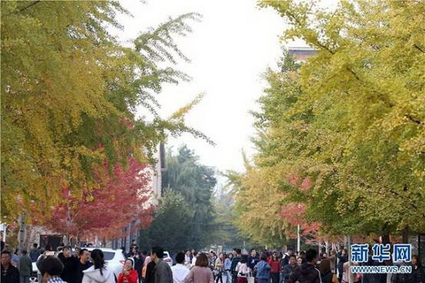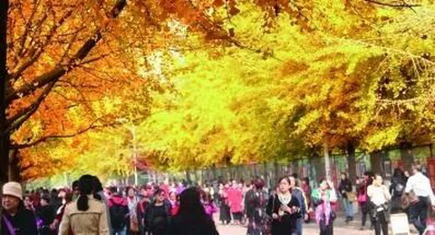 点点金叶,浓淡相宜。辽大老校区种有三百余棵银杏树,走在200余米长的银杏路上,抬眼望去满目金碧,美不胜收。因为观赏者太多,有时还会造成道路拥堵。