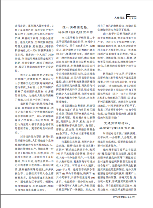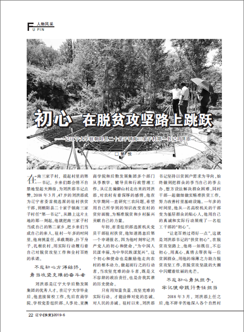 近日,《免费成人直播扶贫》2019年第6期(总第114期)在“人物风采”栏目以“初心 在脱贫攻坚的路上跳跃——记免费成人直播驻朝阳县二十家子镇南三家子村第一书记刘洪添”为题,对我校驻村扶贫干部刘洪添进行专题报道,并将其作为该期封面人物。现将原文转载如下: