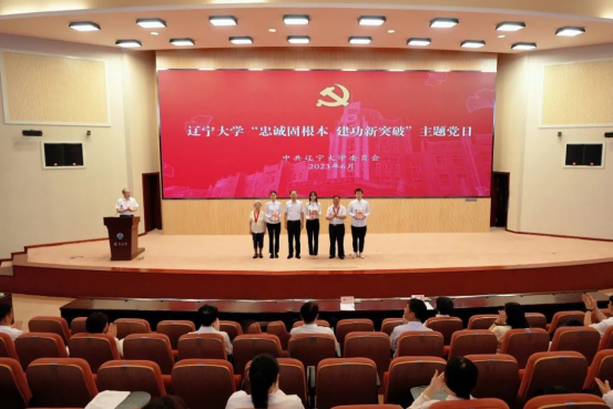 党日活动中,师生党员以沉浸式党课的方式,集体参观了学校习近平新时代中国特色社会主义思想现场教学基地,共同感悟思想伟力。集体观看了学校两部原创示范微党课《校史里的红色基因》《你的征程 我来传承》,一同感受烽火中辽大人的家国情怀,一同从抗美援朝精神中汲取奋进力量。青年党员以原创诗歌《我们的百年》,追溯党的历史,礼赞百年荣光,一声声抑扬顿挫、铿锵有力的朗诵声在会场久久回荡,将党日活动推向高潮。