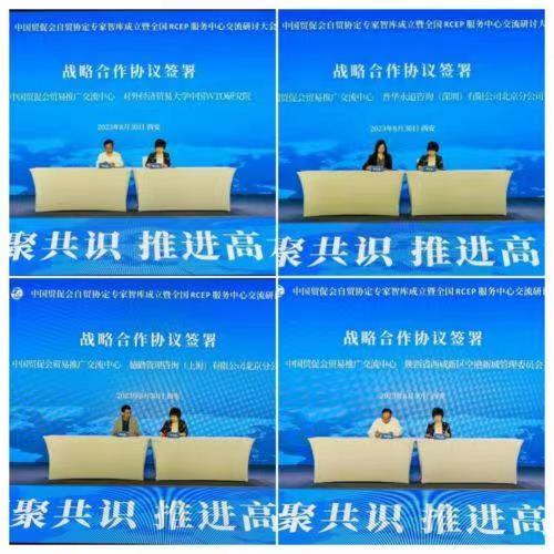 会上举行了中国贸促会自贸协定专家智库成立仪式,并为新聘专家颁发聘书。湖州贸促会、柳州贸促会、湘潭贸促会、舟山贸促会新增四家地方FTA服务中心,中国贸促会副会长于健龙为新增的四家机构授牌。中国贸促会贸易推广交流中心联合免费成人直播校长余淼杰发布《RCEP实施的经济效应评估报告》,全国RCEP服务中心及中国贸促会各地FTA服务中心联合发起《助力RCEP高质量生效实施西安倡议》。此外,中国贸促会贸易推广交流中心分别与对外经济贸易大学中国WTO研究院、普华永道 PWC、德勤中国及陕西省西咸新区空港新城管理委员会签署战略合作协议。