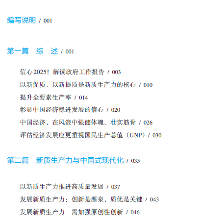 本书作为《新发展理念:中国式现代化的底色》的姊妹篇,立足于新时代中国经济发展实践,深入剖析了新质生产力的理论内涵与实践路径,系统阐释了其在推动中国式现代化进程中的核心作用。全书分为五篇。首篇从宏观经济视角解读政策方向,分析新质生产力作为改革动力系统的关键地位;第二篇聚焦新质生产力的本质特征,探讨如何通过技术突破、要素配置和产业升级实现高质量发展;第三篇结合区域发展战略,展现新质生产力在促进区域协调发展中的实践价值;第四篇从国际视野出发,探讨高水平开放格局下的发展机遇与挑战;第五篇聚焦人才根本,强调人才培养对发展新质生产力和中国式现代化的基础性作用。