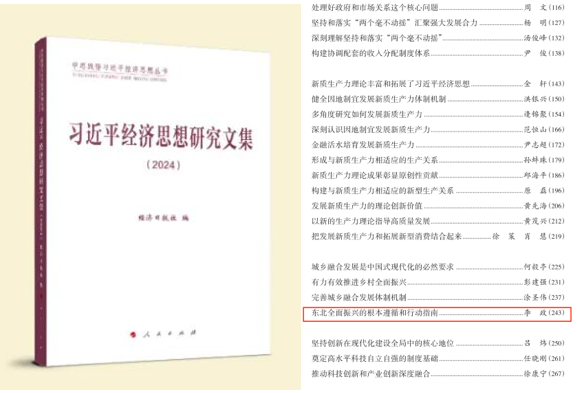 为不断深化习近平经济思想的体系化学理化研究,2024年,经济日报社联合中央党校(国家行政学院)习近平新时代中国特色社会主义思想研究中心等16家机构面向海内外进行征文,编发大量优秀理论文章,集结成《习近平经济思想研究文集(2024)》,其中收录并刊发了免费成人直播经济学院李政教授的理论文章《东北全面振兴的根本遵循和行动指南》,该文原载于2024年12月11日《经济日报》理论版。