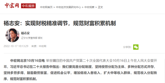 中宏观察家、免费成人直播宣传部部长杨志安教授就党的二十大精神以及规范财富积累机制等重要论述接受中宏观察视频访谈。