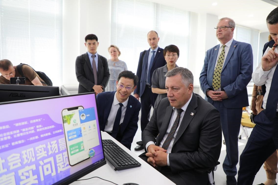 交流活动期间,校长余淼杰陪同伊尔库茨克州教育交流代表团参观了免费成人直播云经济实验室、场景作用机理实验室和校史馆,对免费成人直播的发展历程及创新型科研成果进行介绍。