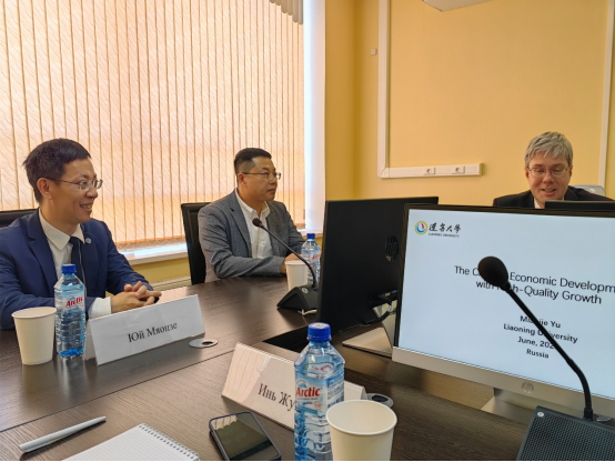 斯坦尼斯拉夫·普罗科菲耶夫说,中俄两国在教育领域的合作有着坚实的基础,辽宁大学是中国“双一流”建设高校,两校合作无疑会提高双方学校的人才培养质量。国际合作部主任莉莉娅•普里霍德科介绍了俄罗斯联邦政府财政金融大学的发展历史,展示了俄罗斯联邦政府财政金融大学举办的“10位诺贝尔奖获得者”项目。余淼杰对俄罗斯联邦政府财政金融大学的热情接待表示感谢,并介绍了辽宁大学专业特色、人才培养等情况。余淼杰指出,辽宁大学与俄罗斯联邦政府财政金融大学进行科研合作、人才培养、教师交流等活动,能够更好服务东北振兴和东北亚开放合作战略布局,共同推动两国经济发展,也有助于提升两校国际影响力和竞争力。