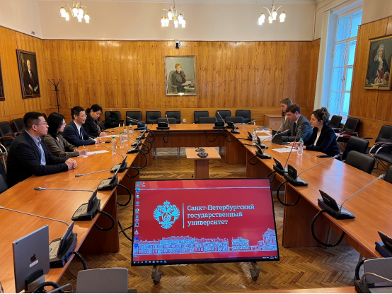 6月9日,代表团访问了圣彼得堡国立大学。圣彼得堡国立大学主管国际事务的副校长谢尔盖•安德留申、国际关系系主任伊琳娜•诺维科娃、斯坦尼斯拉夫•特卡琴科教授等接待了来访客人。谢尔盖•安德留申介绍了圣彼得堡国立大学的悠久历史、在科学、教育和文化领域取得的成就,以及该校与欧美及亚洲顶尖大学和科研机构的合作情况,并提议与辽宁大学共建科研中心,助力中俄企业的技术创新和产业升级。伊琳娜•诺维科娃介绍了该系的学科发展以及开设的硕士课程情况,特别强调了最新开设的“金砖研究”硕士课,并希望增加学生互换和教师交流项目的愿望。