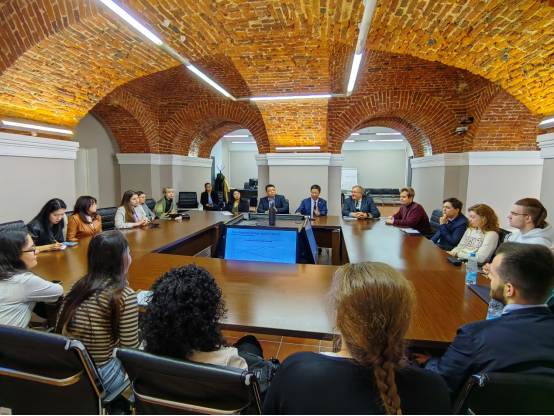 2023年6月6日至10日,辽宁大学党委副书记、校长余淼杰教授,国际交流处处长马爽教授,中国开放经济研究院副院长崔铮教授,青年研究员尹如玉博士一行四人对驻莫斯科的新华社亚欧总分社和俄罗斯三所友好学校进行了工作访问。