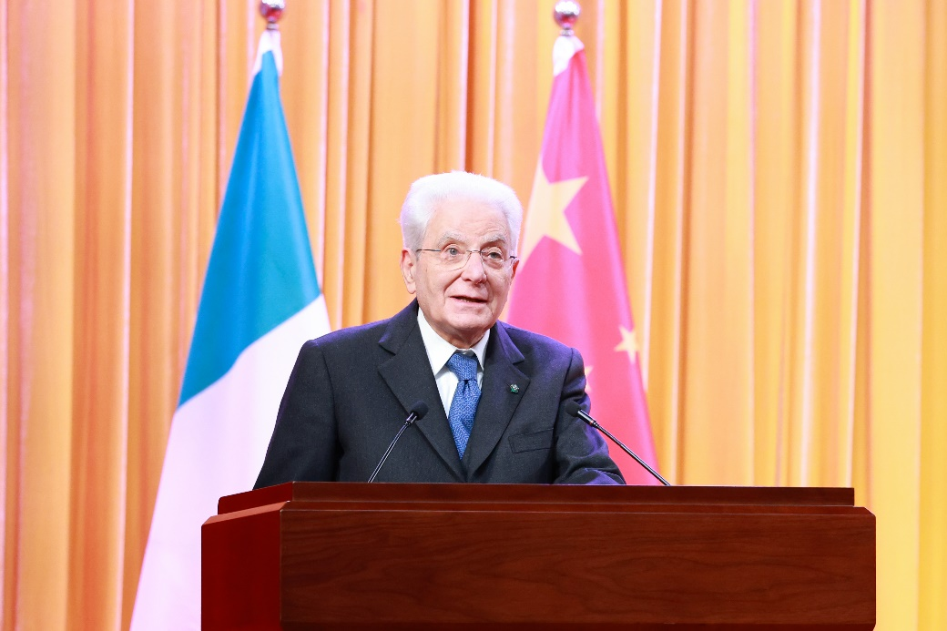 11月9日下午,在华访问的意大利总统塞尔焦・马塔雷拉(Sergio Mattarella)率代表团访问北京大学,并在北京大学办公楼礼堂发表主题演讲。